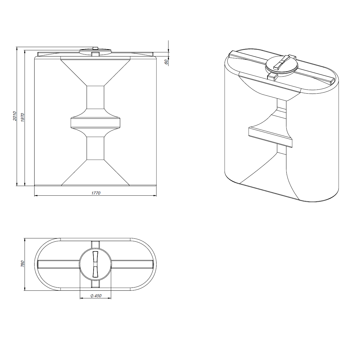 емкость, объем: 2 000 л, форма емкости: прямоугольная, тип эксплуатации: наземная, расположение: вертикальное, диаметр горловины: 45 см, материал: полиэтилен