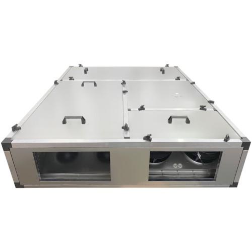 В состав установки входит: пластинчатый рекуператор для утилизации теплоты вытяжного воздуха; фильтры для очистки воздуха; вентиляторы c электронно-коммутируемыми высокоэффективными двигателями; нагреватель для подогрева приточного воздуха (электрический PTC или водяной); интегрированная система автоматики с дистанционным пультом управления; управление компрессорно-конденсаторным блоком (охладитель, комнатный датчик и реле защиты от обмерзания в состав установки не входит - поставляется отдельно); управление по WiFi со смартфона ОС Android. Дополнительные элементы и опции, поставляемые отдельно: воздушные заслонки; гибкие вставки; шумоглушители; охладитель; порошковая покраска.