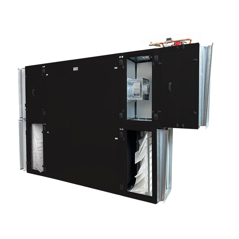 Особенности и преимущества: 2-х ступенчатая рекуперация, стабильная работа рекуператора до –25 °С, экономит тепло, КПД возврата 65–75%, сохраняет влажность, КПД возврата 40–50%, не требуется преднагрев наружного воздуха, не требуется дренажная система, монтаж установки в любом положении, 3 индивидуально настраиваемые скорости, наладка оборудования на заводе-изготовителе, интеграция с «умным домом» по протоколу Modbus, поддержание постоянного давления в канале, индивидуальная настройка вентилятора M1 и M2, управление охлаждением (фреон или вода).